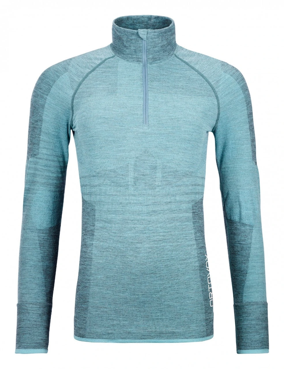 Das langärmelige Funktionsoberteil mit Reißverschluss am Kragen hat Ortovox für sportliche Höchstleistungen konzipiert. Das Grundgerüst besteht aus 190 g/m² Gewebe, an den Heatspots kommen hochatmungsaktive Netzstrukturen zum Einsatz. An empfindlichen Zonen verwendet Ortovox 240 g/m² Material.