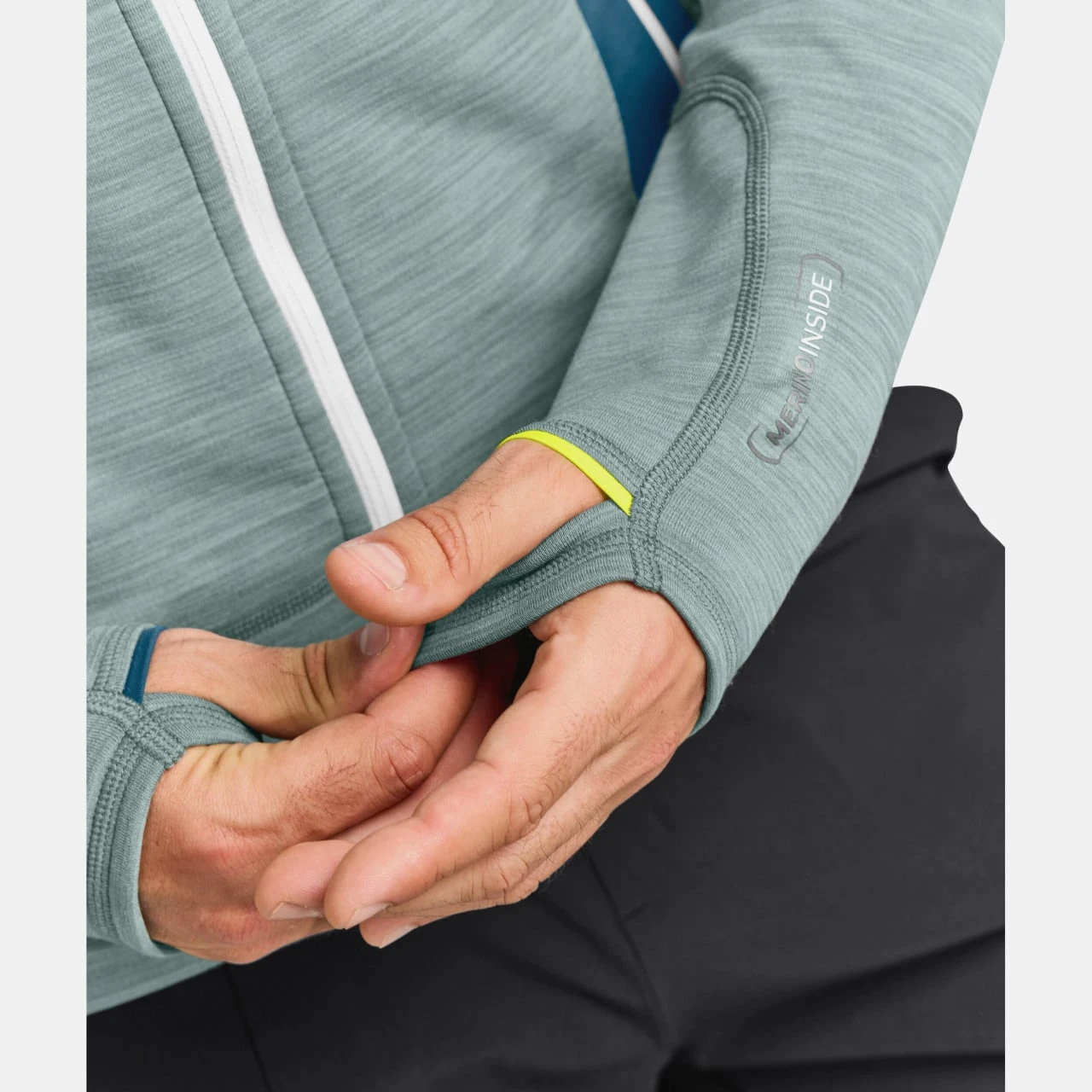 Schnell trocknend, Atmungsaktiv, Merino inside, Merinowolle auf der Haut, Hohes Stretchvermögen, Grosse Beständigkeit und Robustheit, Komfortables Tragegefühl, Made in Europe, Tasmanische Merinowolle