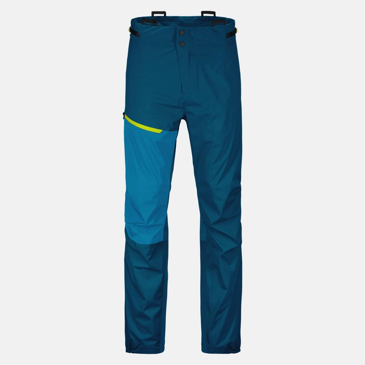 Wasserdicht, Winddicht, 120 MERINO TEC Einsätze im Bundbereich innen, 1 Oberschenkeltasche, Vorgeformter Kniebereich, Seitliche 2-Wege-Reißverschlüsse, ORTOVOX Hosenträger (optional), Mit Haken regulierbarer Bund, Verstärkter Kantenschutz , Beinweitenregulierung an der Innenseite, Saumregulierung, Regular Fit