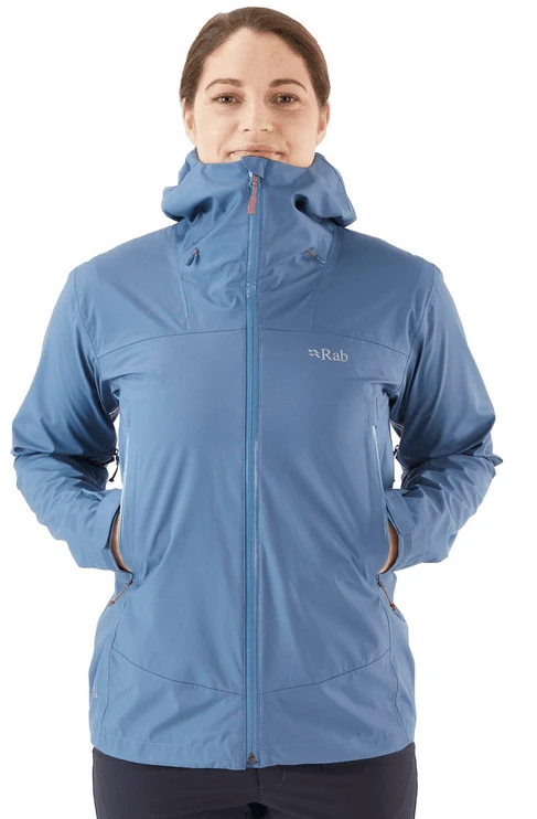 Du bleibst bei deinen Abenteuern trocken und auch dem ökologischen Gedanken verpflichtet: das Gewebe der Regenjacke ist stammt aus Recycling und ist komplett aus einem Polymer (Obermaterial, Futter und Membran) gefertigt und somit ist eine Wiederverwertung nach Ende der Lebensdauer der Jacke vereinfacht. Die Jacke ist für gute Robustheit dreilagig gehalten – lange Nutzungsdauer ist schließlich auch ökologisch. Da hier der Nachhaltigkeitsgedanke eine große Rolle spielt, überrascht es nicht, dass Rab bei der Imprägnierung ohne PFC-Stoffe auskommt. Dennoch perlt das Wasser außen gut ab. Bei alledem ist die Jacke hochfunktionell und bietet vollen Wetterschutz. Über die Ausstattung kann man wirklich auch nicht meckern: voll verstellbare Kapuze, Saum mit Kordelzug, gut geschnittene Brusttaschen. Weiterhin kann die Jacke in ihrer eigenen Tasche verstaut und somit als Notfall-Regenjacke mitgeführt werden.