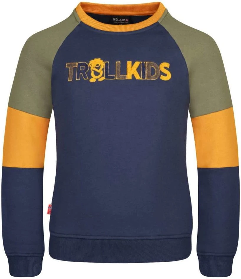 Der Trollkids-Schriftzug in Hochfloor-Applikation und das dreifarbige Design machen das Kids Trollfjord Sweatshirt sicherlich zum neuen Lieblingsteil.