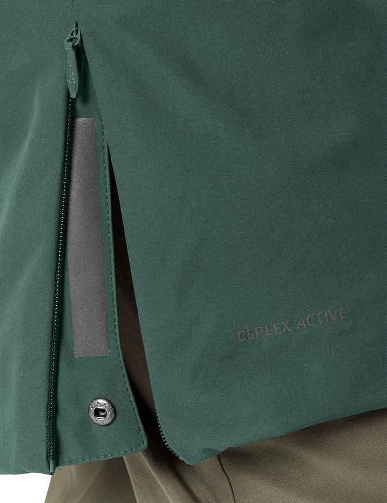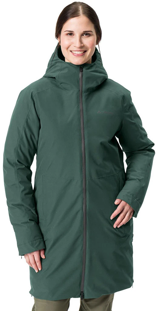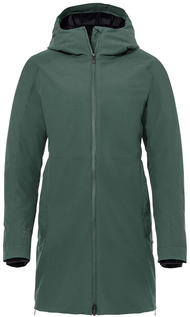 Das hoch funktionelle und leichte Isolationsmaterial ist sozusagen eine „vegane Daune“: bauschig-leichte, elastische Faserbällchen aus 100 % recycelten PET Flaschen, die die warme Luft daunenähnlich einschließen. Des Weiteren punktet der Mantel mit einem wasserdichten 2-Wege-Frontreißverschluss, reflektierenden Elementen an Brust und an den Ärmeln sowie zusätzlich aufzippbaren Seitenschlitzen. Abgerundet wird dieser umweltfreundliche Damen Wintermantel durch eine Innentasche, zwei warme Eingrifftaschen mit Reißverschluss, verstellbare Ärmelbündchen und eine verstellbare, warme Kapuze.